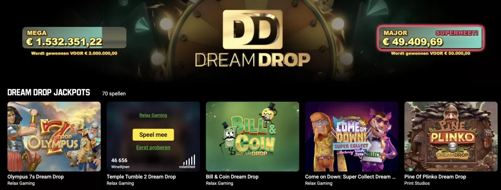 Het legale Unibet online casino beschikt over een ruime selectie aan jackpot gokkasten. Deze kun je zonder pardon spelen, mits je een account hebt aangemaakt. Een aantal bekende namen hiervan zijn Mega Moolah, Dream Drop Jackpots, Hall of Gods, Arabian Nights en Divine Fortune. Deze spellen zijn allemaal te spelen bij Unibet, terwijl ze zijn gekoppeld aan grote prijzenpotten die kunnen oplopen tot miljoenen euro’s.